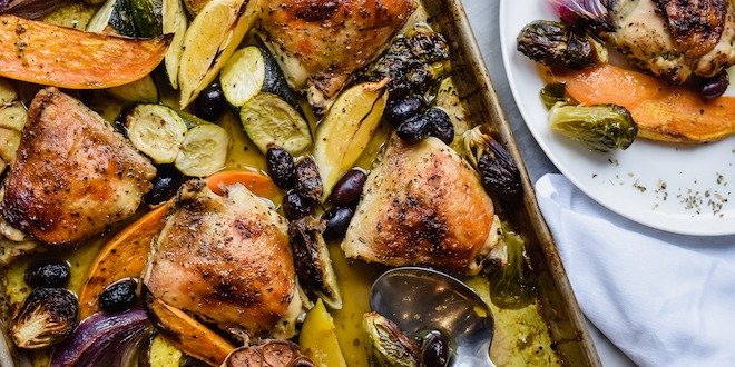Roasted Sheet Pan Greek Chicken with Loaded Veggies