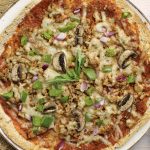 4 tortilla, ½ cup marinara sauce, 1 cup mozzarella cheese, ½ cup green bell pepper, ½ cup mushroom, ¼ cup red onion