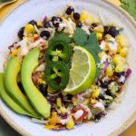 Drizzle ⅓ cup of dressing on top of the quinoa bowl. Option to top with more chopped cilantro, jalapeño, or an extra squeeze of lime juice. Serve and enjoy!
