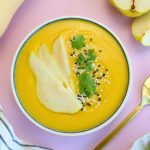 Allow to cool a little before pureeing. In batches, puree the soup. The best way to do this is with a good blender, but an immersion blender will work too. Don’t blend too long, or it will have a baby-food consistency, just blend until smooth. Leave a slight texture.