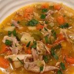 While the chicken is cooling, rinse the quinoa well in a strainer and add the quinoa and the zucchini to the broth and cook for another 20-30 minutes.