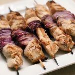 1/3 cup lemon juice, 1/3 cup olive oil, 1/4 tsp salt, 1/4 tsp pepper, 1 tbsp oregano, ¾ tsp turmeric, 1 tsp paprika, 3 cloves garlic, 2 lb chicken