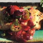 Remove from the heat and place each fillet on a plate and top each fillet with half of the cherry salsa.
