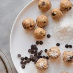 1 cup oats, ½ cup nut butter, 2 tbsp honey, ¼ cup protein powder, ¼ cup coconut, ¼ cup dark chocolate chips