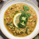 1 cup red lentils, 14 oz tomatoes, 3 cups vegetable broth