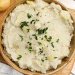 Add the butter, Greek yogurt, minced garlic, salt, and pepper. Mash with a potato masher or use an immersion blender for a smoother consistency.