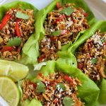 Spoon the tofu mixture into lettuce cups. Garnish with your choice of sesame seeds, cilantro, and a squeeze of lime. Serve and enjoy!