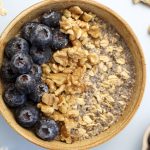 ⅓ cup rolled oats, ½ cup almond milk, ¼ cup Greek yogurt, 1 tbsp chia seeds, ½ scoop protein powder, ¼ tsp cinnamon, ¼ tsp vanilla extract