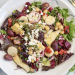½ cup hearts of palm, ½ cup artichoke hearts, ½ cup chickpeas, 1 roasted red pepper, ¼ cup cucumber, ¼ cup red onion, ⅓ cup radicchio, 2 cups mixed greens