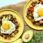 Add the black beans, red bell pepper and mushrooms to the skillet. Cook for an additional 5-7 minutes until the mushrooms release their moisture and the bell pepper is tender.