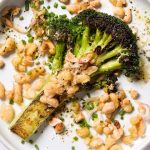 Remove the cookie sheet from the oven and place the white beans all around the broccoli. Place the sheet back in the oven and continue roasting until the broccoli has browned and the white beans have crisped a little, about 20-25 minutes.
