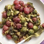 1 ½ cup Brussels sprouts, ½ cup red grapes, 2 tsp olive oil, ¼ tsp salt, ¼ tsp pepper, ¼ tsp garlic powder