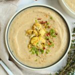 This rich and savoury roasted cauliflower soup tastes like a warm and nourishing hug! It also contains white beans for an extra dose of natural creaminess, protein, and fibre.