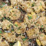Transfer the crispy smashed baby potatoes to a serving platter. Garnish with chopped parsley and serve with lemon wedges for a fresh burst of flavour.