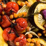 Add chickpeas and cook for another 20 minutes to half hour or until the veggies are speckled with brown marks.