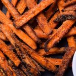 3 large sweet potato, 2 cloves garlic, 1 ½ tsp paprika, ¼ cup grape seed oil, 2 tsp cornmeal, 1/8 tsp pepper