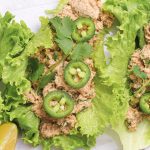 5 oz salmon, 1 tbsp Greek yogurt, 1 lime, 1 tsp Dijon mustard, ¼ tsp chili powder, ¼ tsp smoked paprika, ¼ tsp cumin, ¼ tsp garlic powder, ¼ tsp pepper, 1 tbsp cilantro, 1 green onion