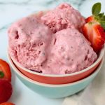 If you prefer to freeze the strawberry mint “froyo”, prior to serving, let it sit at room temperature for 10 minutes and then scoop it into bowls. Optionally, top it with fresh strawberries and mint leaves.