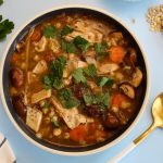 Heat the olive oil in a large soup pot over medium heat. Add the leeks and sauté until they have softened, 5-7 minutes. Stir in the mushrooms, carrots, barley, garlic and salt and sauté 1 minute longer.