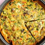 In a bowl, whisk together eggs, milk, salt, and black pepper. Stir in the sautéed vegetable mixture, chopped greens, and parmesan cheese.