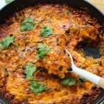 Cover and simmer on low for 25 minutes, stirring occasionally. Remove the lid and stir in black beans and spinach. Stir until spinach is wilted, about a minute. Top with shredded cheese and and bake for 5 minutes in the oven until the cheese is melted. Option to broil for 2-3 minutes.