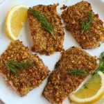 Remove from the oven and let it rest for a few minutes. Garnish with fresh dill or parsley, and serve with a wedge of lemon on the side.
