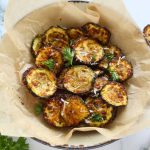 Oven instructions: Preheat the oven to 400°F (200°C). Lay zucchini slices on a baking sheet lined with parchment paper and bake for 15-20 minutes or until crispy. Note that they may take longer to crisp up compared to air frying.