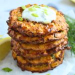 Air fryer instructions: brush air fryer basket with olive oil and place fritters into air fryer basket, leaving some space between each fritter. Lightly brush each fritter with a little bit of olive oil and cook for 10-15 minutes at 400F (200C) flipping them halfway. Depending on the size of your air fryer you may need to cook the fritters in batches.